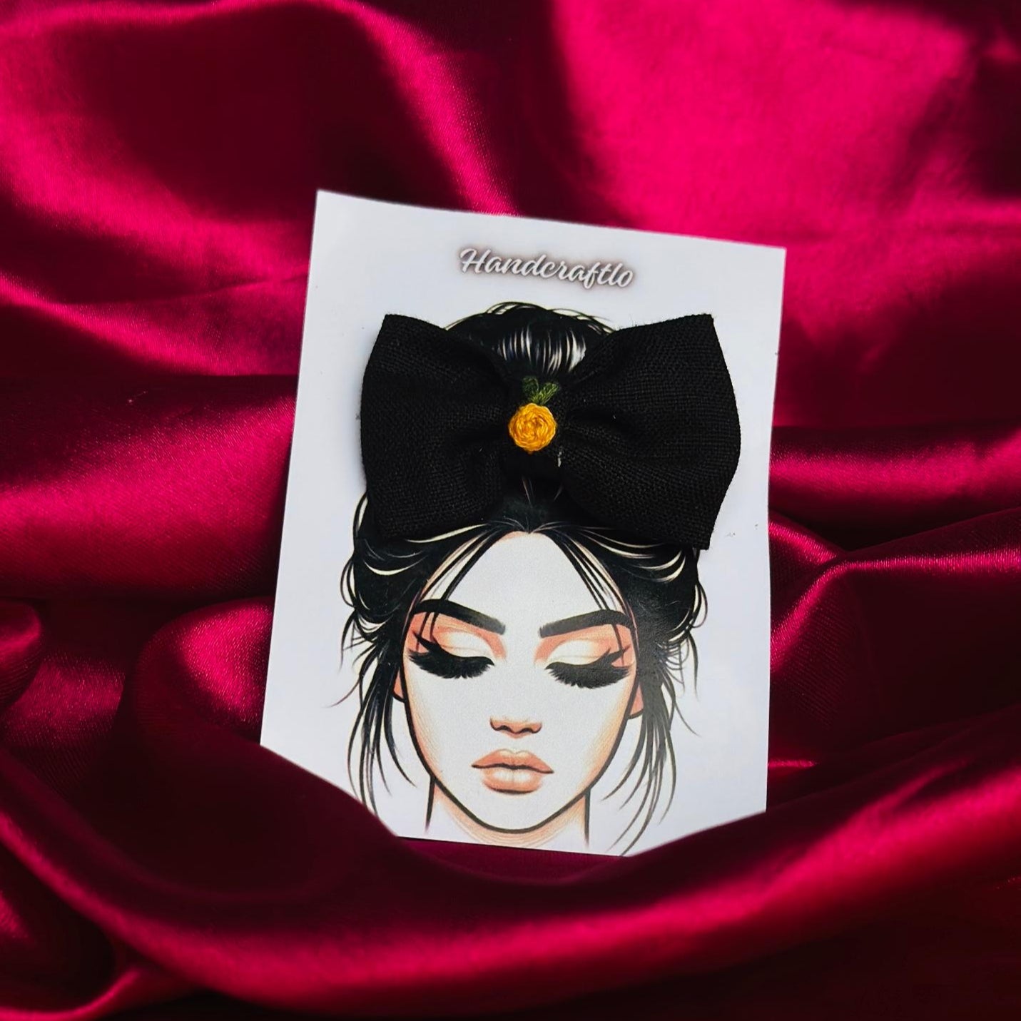 Elevate your everyday hairstyle with our 100% handmade threadwork hairpin, beautifully designed on a classic black base and featuring a bright yellow flower with delicate green leaves. This elegant floral design adds a graceful touch of nature to your look, making it perfect for both casual and festive occasions.